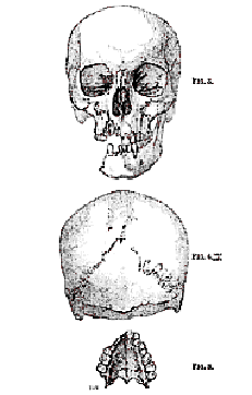 The skull (figs. 1 to 5), though slightly damaged, is in a [86] very fair state of preservation, and is a remarkably well formed and spacious cranium. The cephalic index is 0.78, and it therefore belongs to the sub-brachycephalic division.