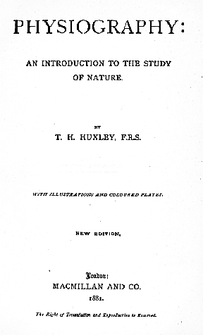 I undertook, therefore, to deliver twelve lectures, not on any particular branch of natural knowledge, but on natural phenomena in general; and I borrowed the title of "Physiography," which had already been long applied, in a different sense, to a department of mineralogy, for my subject; inasmuch as I wished to draw a clear line of demarcation, both as to matter and method, between it and what is commonly understood by "Physical Geography."