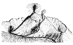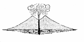 After a volcano has long been silent and the larger crater has been more or less filled, partly by ejected materials which had fallen back into the cavity during the last eruption, and partly by matter washed in by rain, renewal of activity through the old channel may give rise to the [195] formation of a new cone seated within the old crateral hollow. Great changes may indeed be effected in the character of a volcano by successive eruptions, new cones being thrown up at one time, and old ones obliterated at another. Fig. 54, shows the summit of Vesuvius as it appeared in I756, when there were no fewer than three separate cones, one within another, encircling as many craters. But about ten years afterwards the summit presented the form shown in Fig. 55, where a single cone rises from the floor of the great crater. The curious stages through which a volcano may pass are well illustrated by the story of Vesuvius.