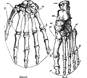 Before we can discuss the first point with [118] advantage we must consider with some attention, and compare together, the structure of the human hand and that of the human foot, so that we may have distinct and clear ideas of what constitutes a hand and what a foot.