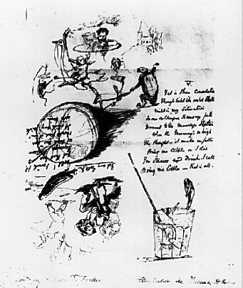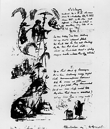 down to Andertons, July 15th 1852 Therm 108 degrees in the sun and suffered a Coup de Soleil or something very like it on the top of a bus. Ive been boiling, Ive been boiling Till my soul is almost fried, Yet thank God I'm here and smiling By the true Red Lions's side Whilst our Land-lord's meat is spoiling |
