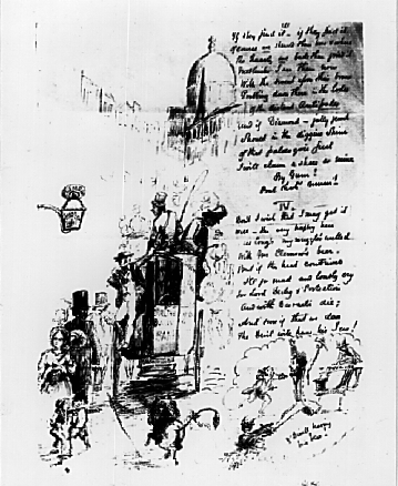 Well I'm very happy here As long as my Muzzle's wetted With Mr. Clement's beer. But if the heat continues I'll go mad and lowly cry For Lord Derby & Protection And with Disraeli die, And sure that if we do The devil will have his Jew! |