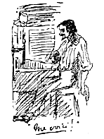 SOMEBODY: "Unsociable fellow that is." Exit.