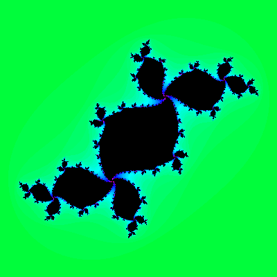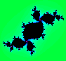 The green figure is a Julia set with the parameter µ taken from the center of the circle on top of the cardioid.